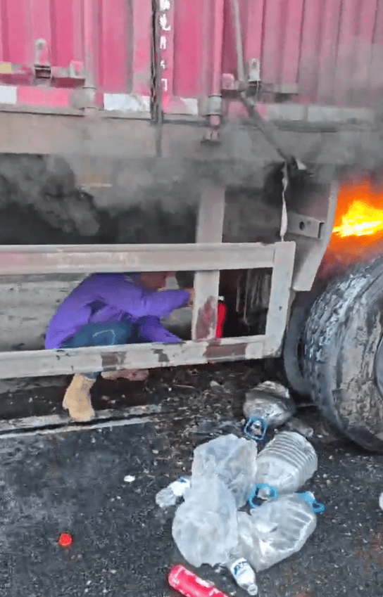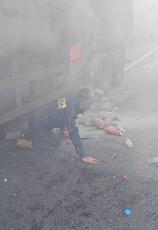 参与后,杜帅星第偶然间评估现场境况,“当时只要一条轮胎内胎正在燃烧,我挑选用我车上的水基灭火器举行一个钢圈的降温和刹车饱的降温。”杜帅星先容,当时轮胎仍旧爆胎,“相当于开释了压力卡车轮胎,也是基于这个境况,我才钻进车底去举行灭火,但效益甚微。”